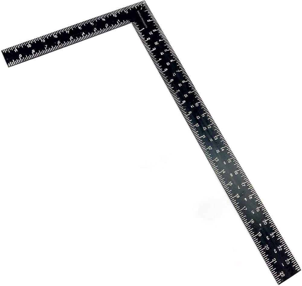 24"x12", 4mm thick with markings on both sides for right angle checking.