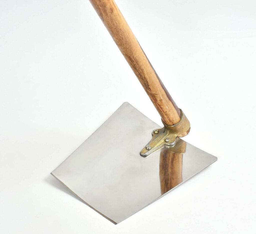 Tampered hardened steel square blade with handle for digging work.